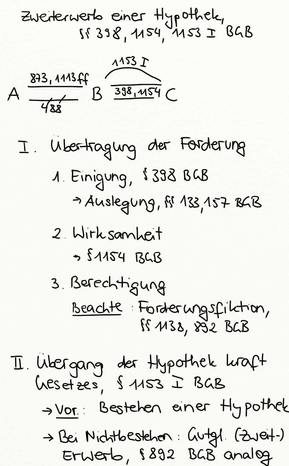 Zweiterwerb einer Hypothek, §§ 398, 1154, 1153 I BGB