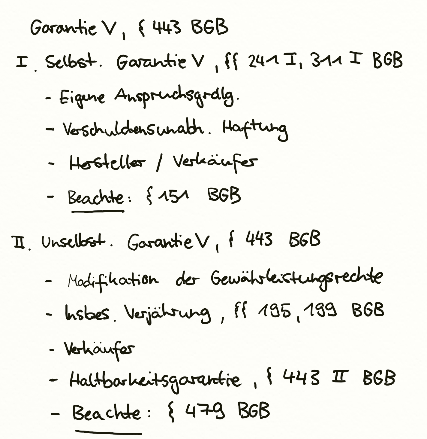 § 443 II BGB, Beschaffenheitsgarantie, § 443 I BGB, § 276 BGB, Haltbarkeitsgarantie, Unselbständige Garantie, § 443 BGB, Selbständige Garantie, Garantie, § 442 I 2 BGB, Verbrauchergarantie, § 444 BGB, § 442 I BGB, § 442 BGB, § 479 BGB