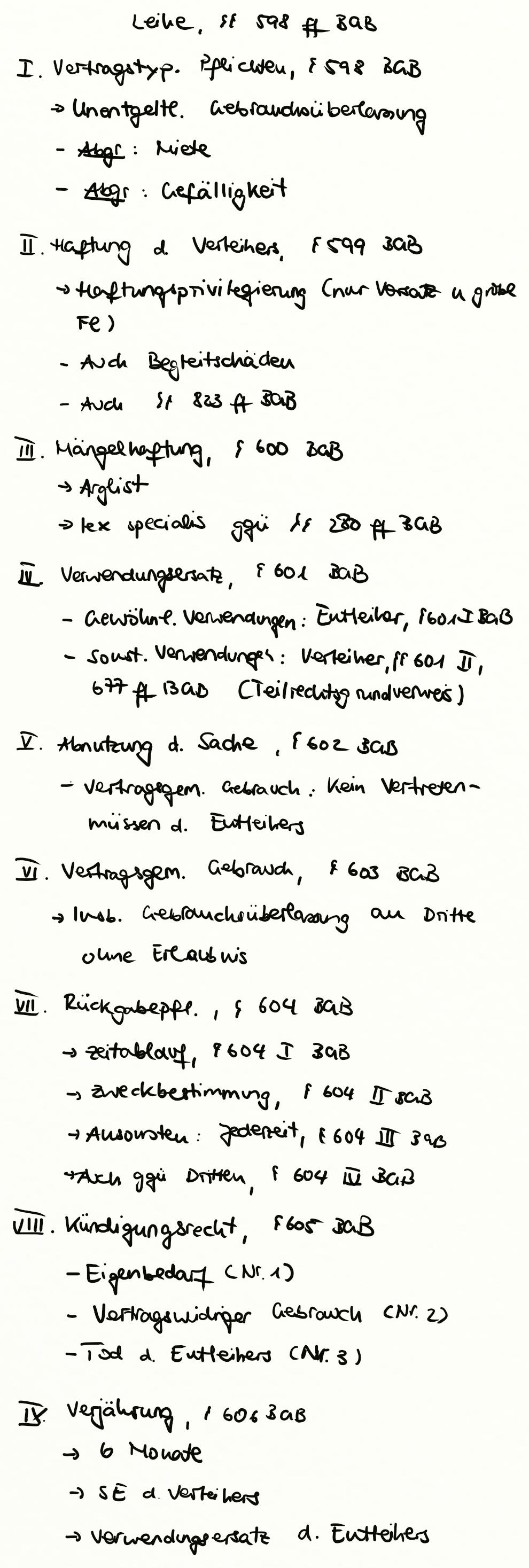 Verjährung, Haftungsprivilegierung, Verwendungsersatz, § 599 BGB, § 601 BGB, § 601 I BGB, § 598 BGB, Leihe, § 600 BGB, § 603 BGB, § 604 I BGB, § 601 II BGB, Arglist, § 602 BGB, § 604 IV BGB, Gefälligkeit, § 605 BGB, § 604 BGB, Kündigung, § 604 II BGB, § 604 III BGB, Miete, Eigenbedarf, § 606 BGB
