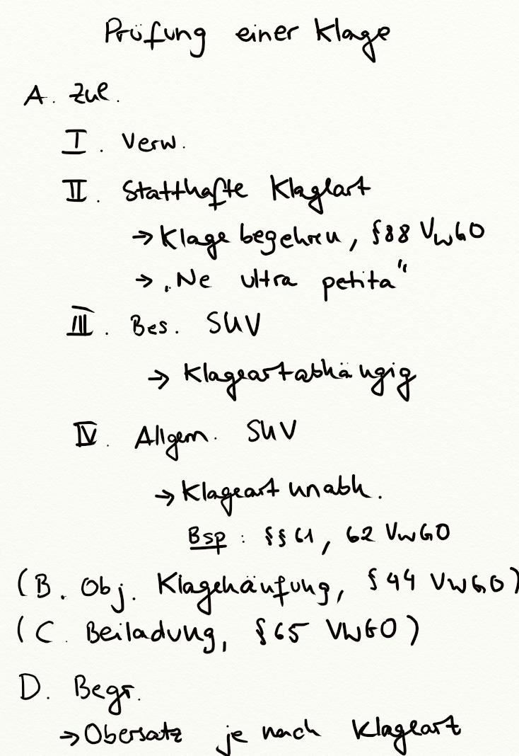 Klage, Verwaltungsrechtsweg, Begründetheit einer Klage, Zulässigkeit einer Klage, Statthafte Klageart, § 88 VwGO, Klagebegehren, § 61 VwGO, Eröffnung des Verwaltungsrechtsweges, § 62 VwGO, Beteiligtenfähigkeit, Ne Ultra petita, § 65 VwGO, Objektive Klagehäufung, Beiladung, Prozessfähigkeit, § 44 VwGO, Beteiligungsfähigkeit, Allgemeine Sachurteilsvoraussetzung, Sachurteilsvoraussetzung, besondere Sachurteilsvoraussetzung, Klagehäufung, Allgemeine Sachurteilsvoraussetzungen, Besondere Sachurteilsvoraussetzungen