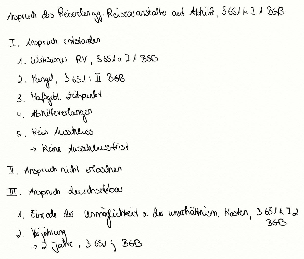 Anspruch des Reisenden gegen den Reiseveranstalter auf Abhilfe, § 651k I 1 BGB