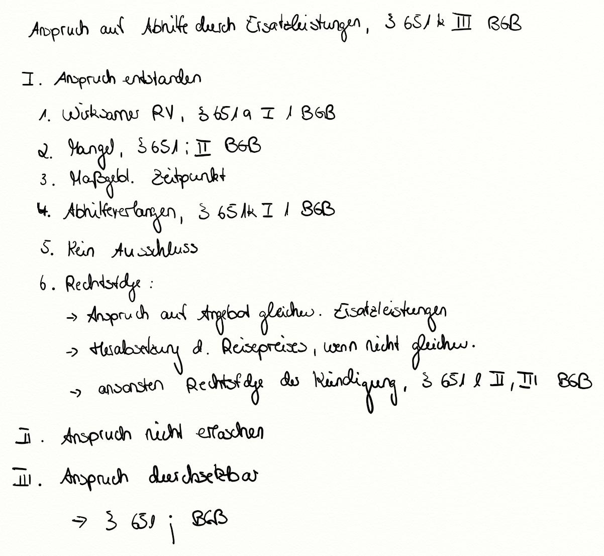 Anspruch des Reisenden gegen den Reiseveranstalter auf Abhilfe durch Ersatzleistungen, § 651k III BGB