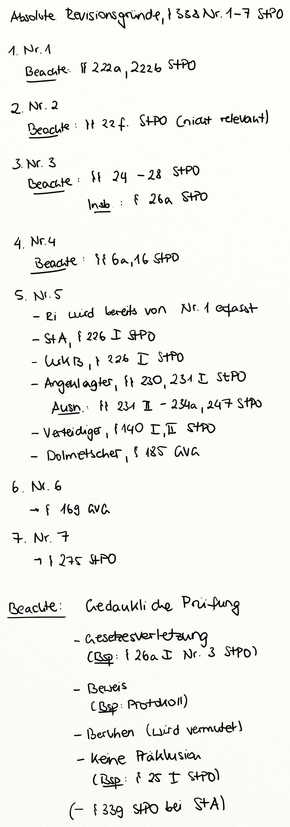 Absolute Revisionsgründe, § 338 Nr. 1-7 StPO