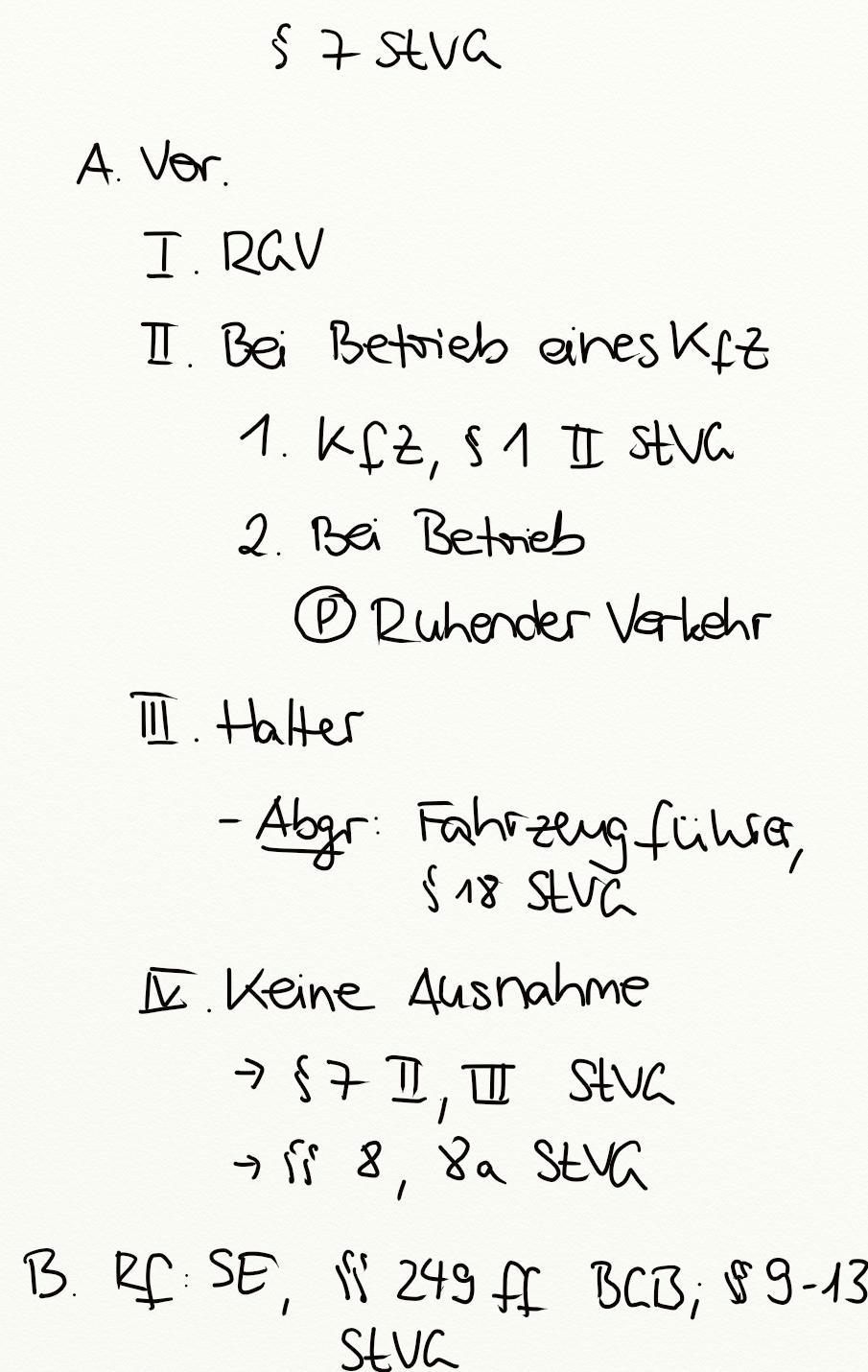 § 10 StVG, § 16 StVG, § 11 S. 2 STVG, § 11 StVG, § 17 StVG, Schmerzensgeld, vermutetes Verschulden, § 17 I StVG, § 17 II StVG, § 1 StVG, Verkehrsunfall, § 8 Nr. 1 StVG, § 1 II StVG, Betriebsgefahr, § 7 I StVG, § 18 I StVG, § 115 VVG, § 115 S. 1 VVG, Direktanspruch, Haftpflichtversicherung, § 9 StVG, § 115 S. 4 VVG, § 8 StVG, Exkulpation, § 18 StVG, Fahrzeugführer, Fahrzeughalter, § 7 StVG, KfZ, Gesamtschuld, Bei Betrieb