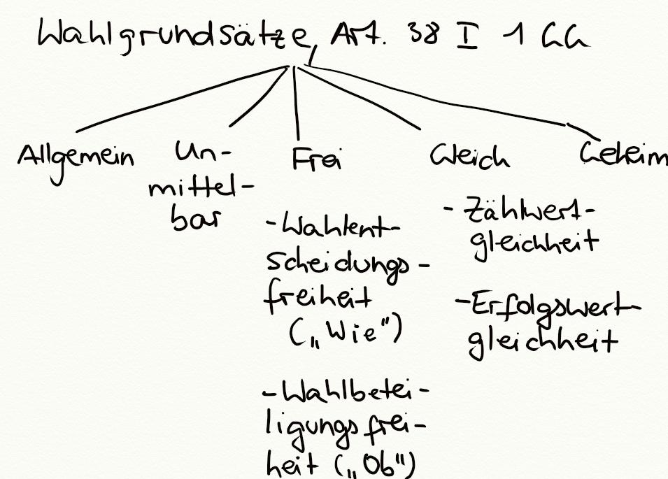 Allgemeinheit der Wahl i.S.v. Art. 38 I 1 GG bedeutet, dass bestimmte Bevölkerungsgruppen nicht von vornherein von der Wahl ausgeschlossen sein dürfen.
