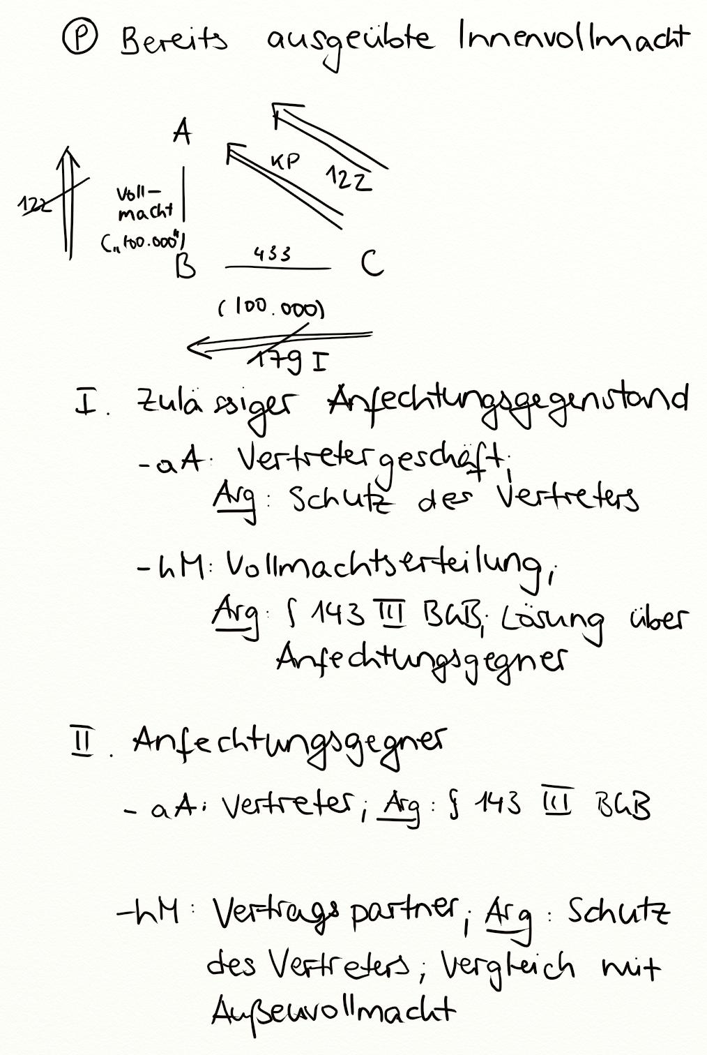 Problem - Anfechtung einer bereits ausgeübten Innenvollmacht