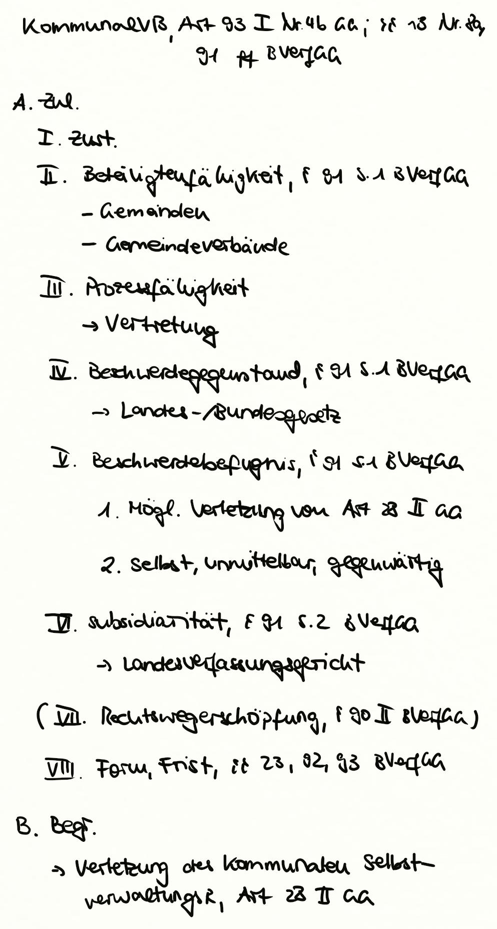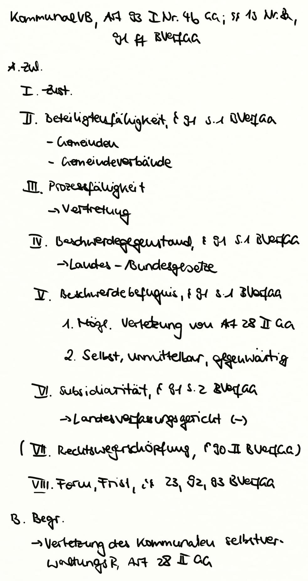 Kommunalverfassungsbeschwerde, Art. 93 I Nr. 4b GG, § 13 Nr. 8a, 91ff. BVerfGG