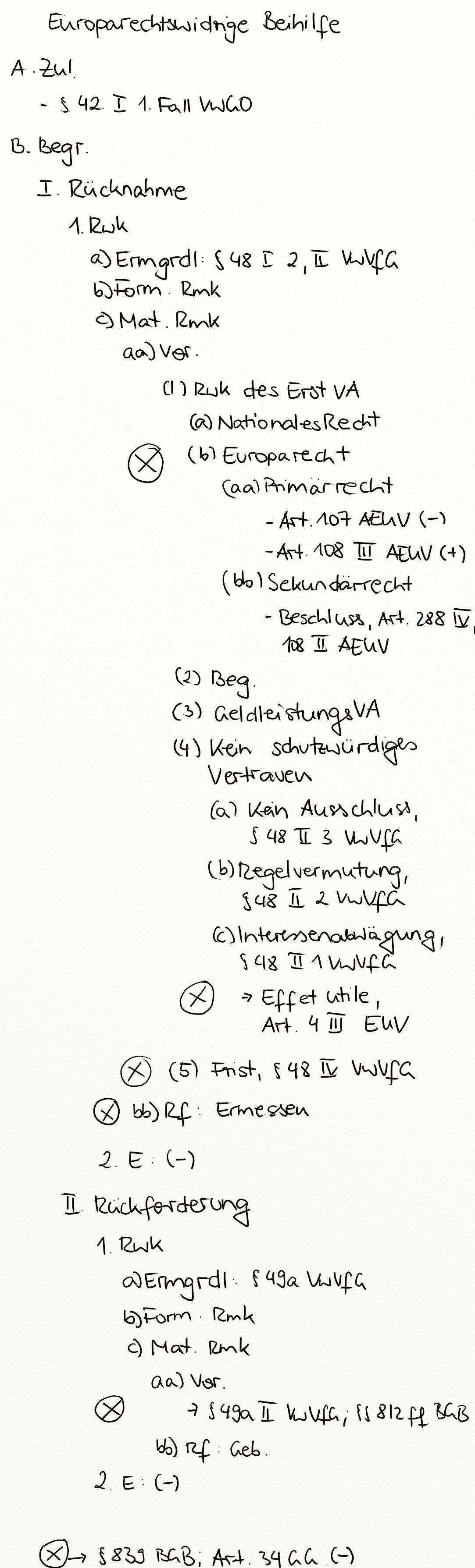Interessenabwägung, Art. 107 AUEV, Europarechtswidrige Beihilfe, § 48 II 1 VwVfG, Art. 288 IV AEUV, Art. 288 AEUV, § 48 IV VwVfG, Art. 108 III AEUV, § 49a II VwVfG, Effet utile, § 49a VwVfG, Art. 4 III EUV, Amtshaftung, § 48 VwVfG, Art. 108 II AEUV, Beihilfe, § 839 BGB, Art. 108 AEUV, Beschluss der Kommission, Art. 34 GG, Sekundärrecht, Primärrecht, Rücknahme eines Verwaltungsaktes