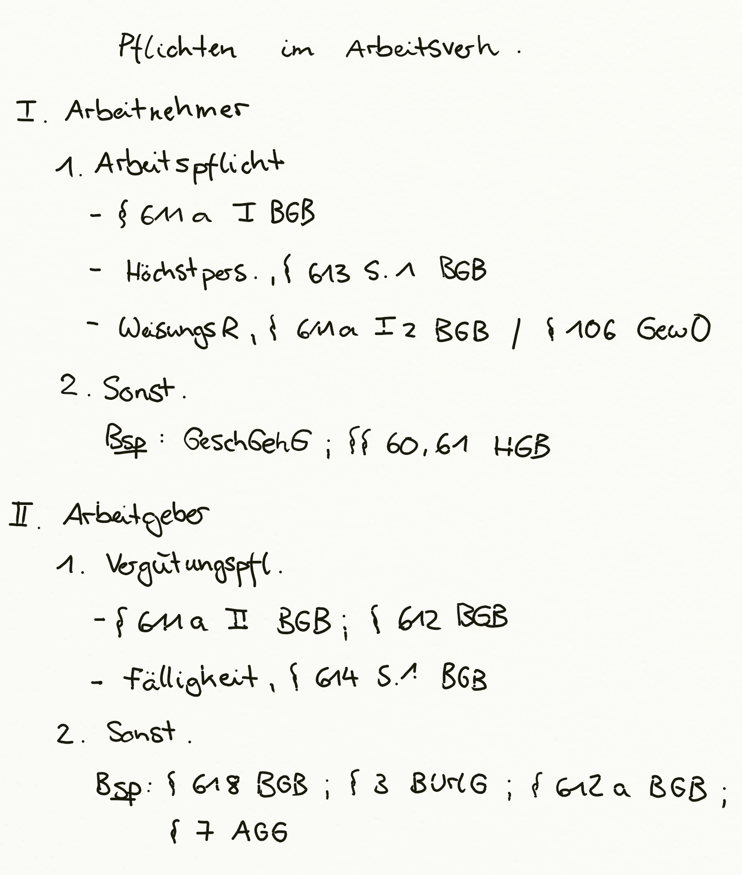 Diskriminierungsverbot, § 7 AGG, Arbeitspflicht, Maßregelungsverbot, Höchstpersönlich, Arbeitsvertrag, Vergütungspflicht, § 612 BGB, Arbeitnehmer, Konkurrenzverbot, Arbeitgeber, § 3 I BUrlG, § 612a BGB, § 618 BGB, § 3 BUrlG, Weisungsrecht, § 106 GewO, § 613 BGB, § 613 S. 1 BGB, § 61 HGB, Verschwiegenheit, § 17 UWG, § 60 HGB, § 611a BGB