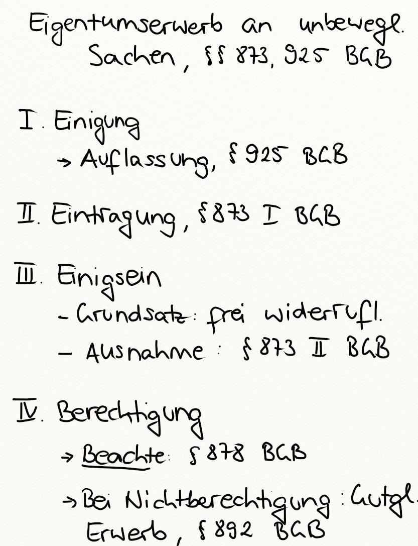 Eigentumserwerb an unbeweglichen Sachen, §§ 873, 925 BGB