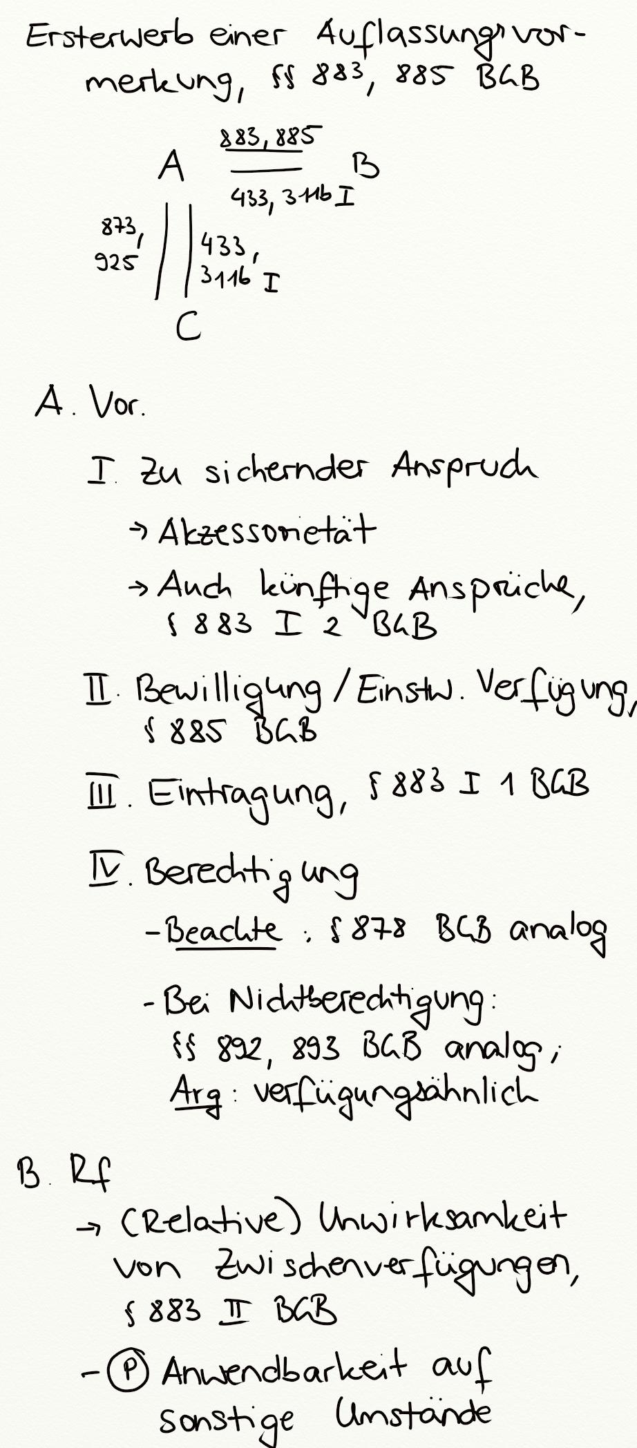Ersterwerb einer Auflassungsvormerkung, §§ 883, 885 BGB