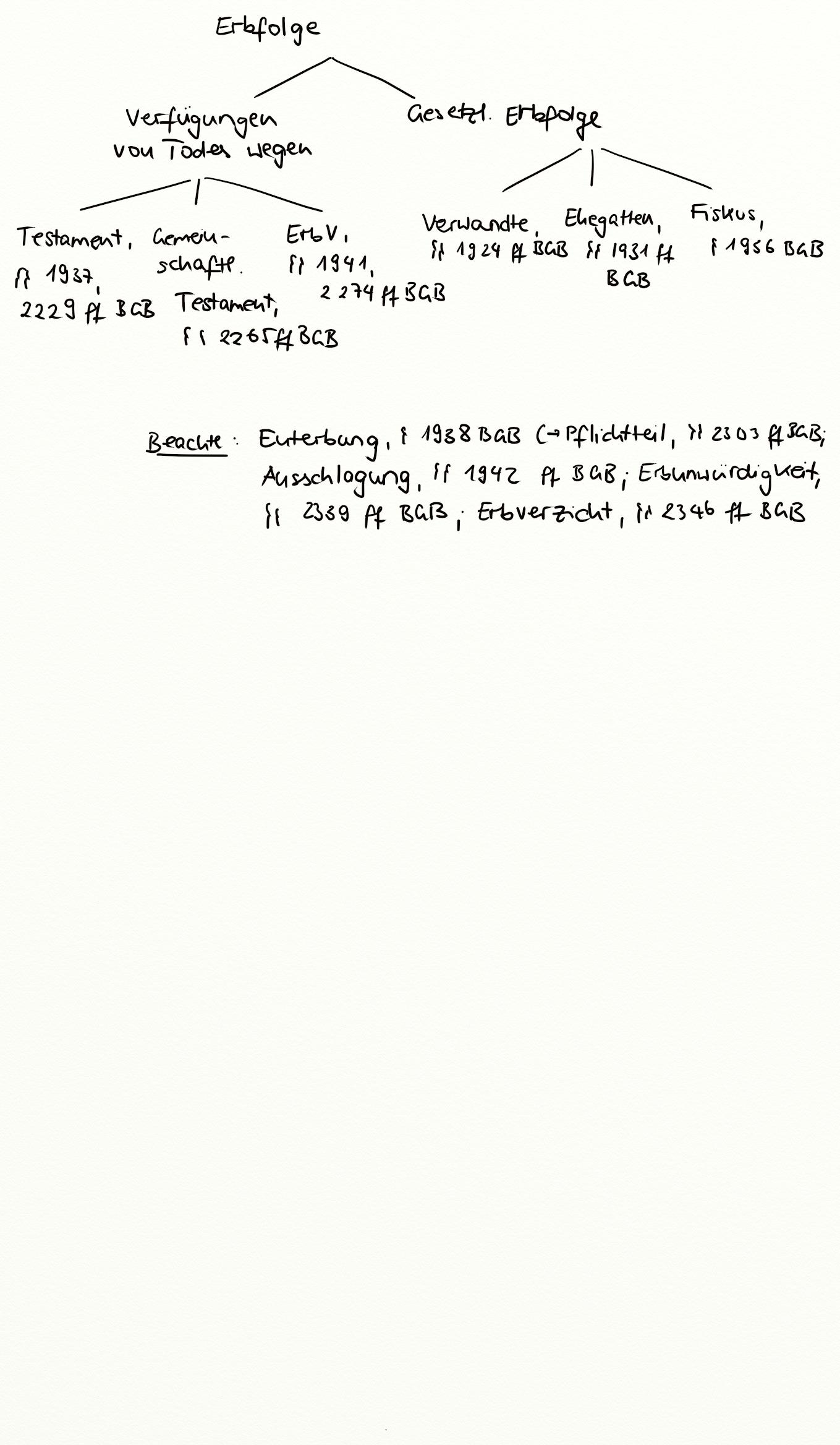 § 2346 BGB, § 2303 BGB, § 2274 BGB, § 2265 BGB, Verfügungen von Todes wegen, Erbfolge, Gemeinschaftliches Testament, Testament, Erbvertrag, Fiskus, Enterbung, Pflichtteil, Ausschlagung, Erbunwürdigkeit, Erbverzicht, § 1924 BGB, § 1931 BGB, § 1936 BGB, § 1937 BGB, § 1938 BGB, § 1941 BGB, § 1942 BGB, § 2229 BGB, § 2239 BGB, Verfügung, gesetzliche Erbfolge