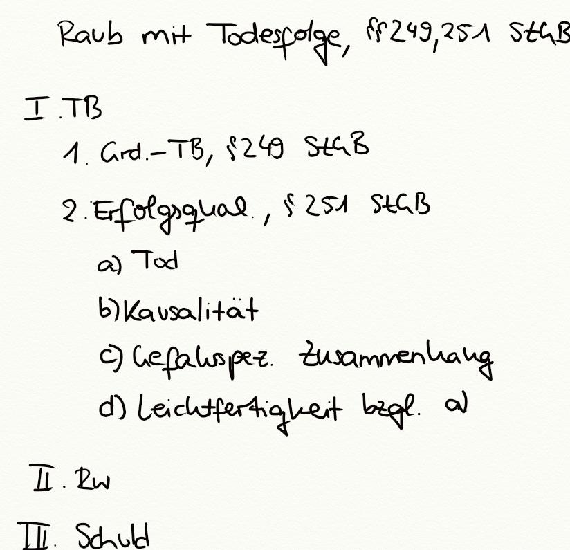 Raub mit Todesfolge, §§ 249, 251 StGB