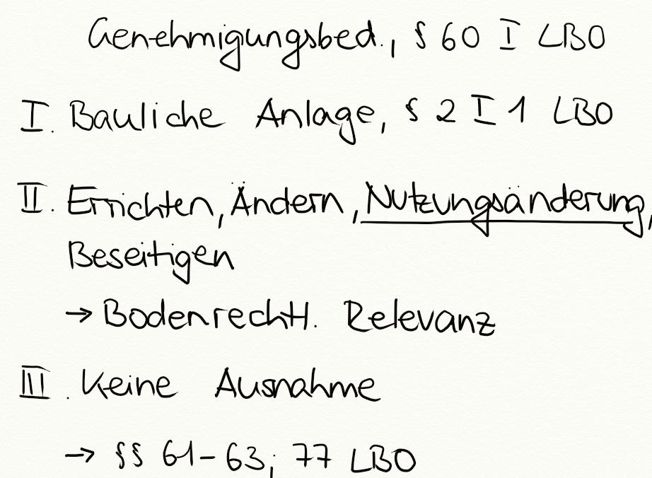 Genehmigungsbedürftigkeit, § 60 I LBO