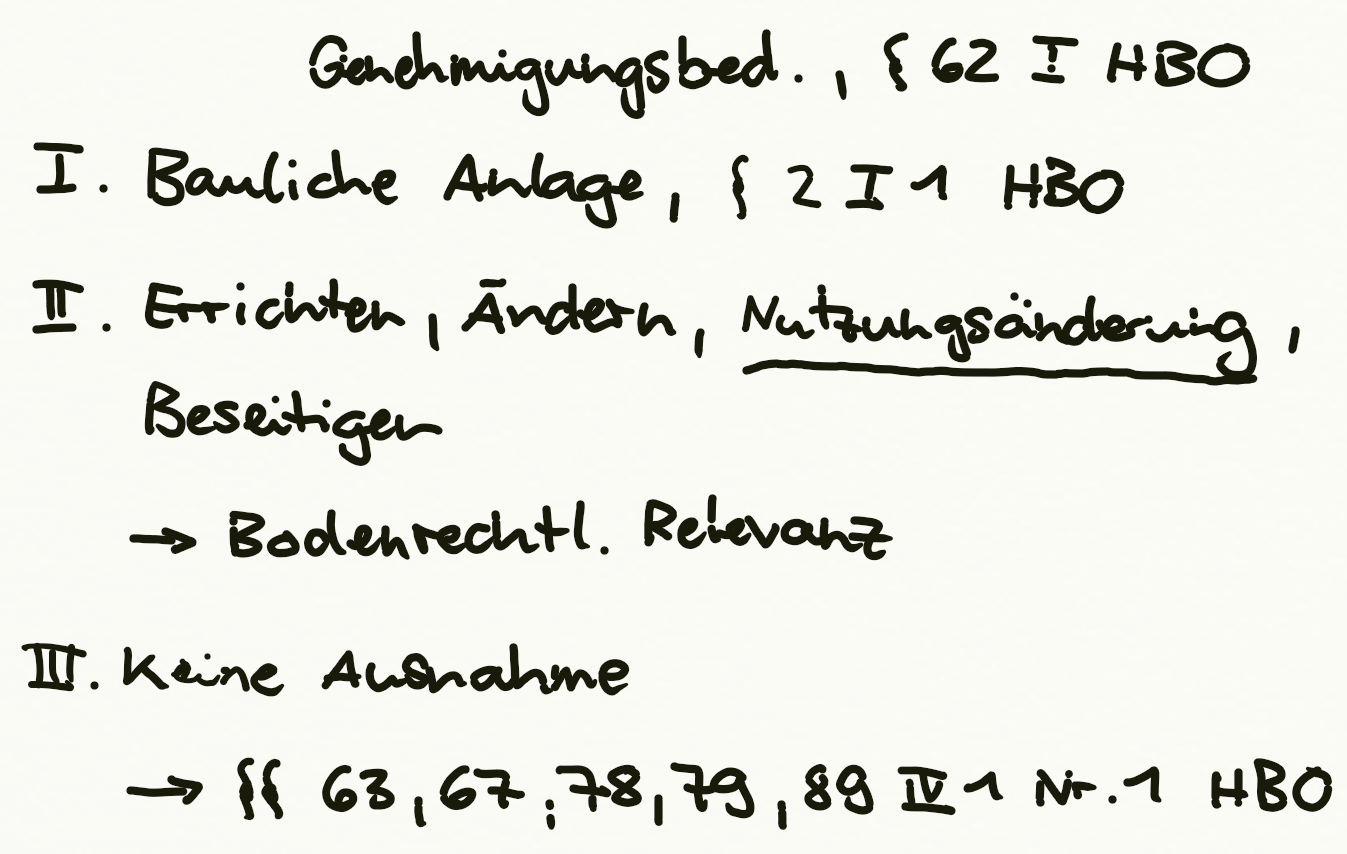 Genehmigungsbedürftigkeit, § 62 I HBO