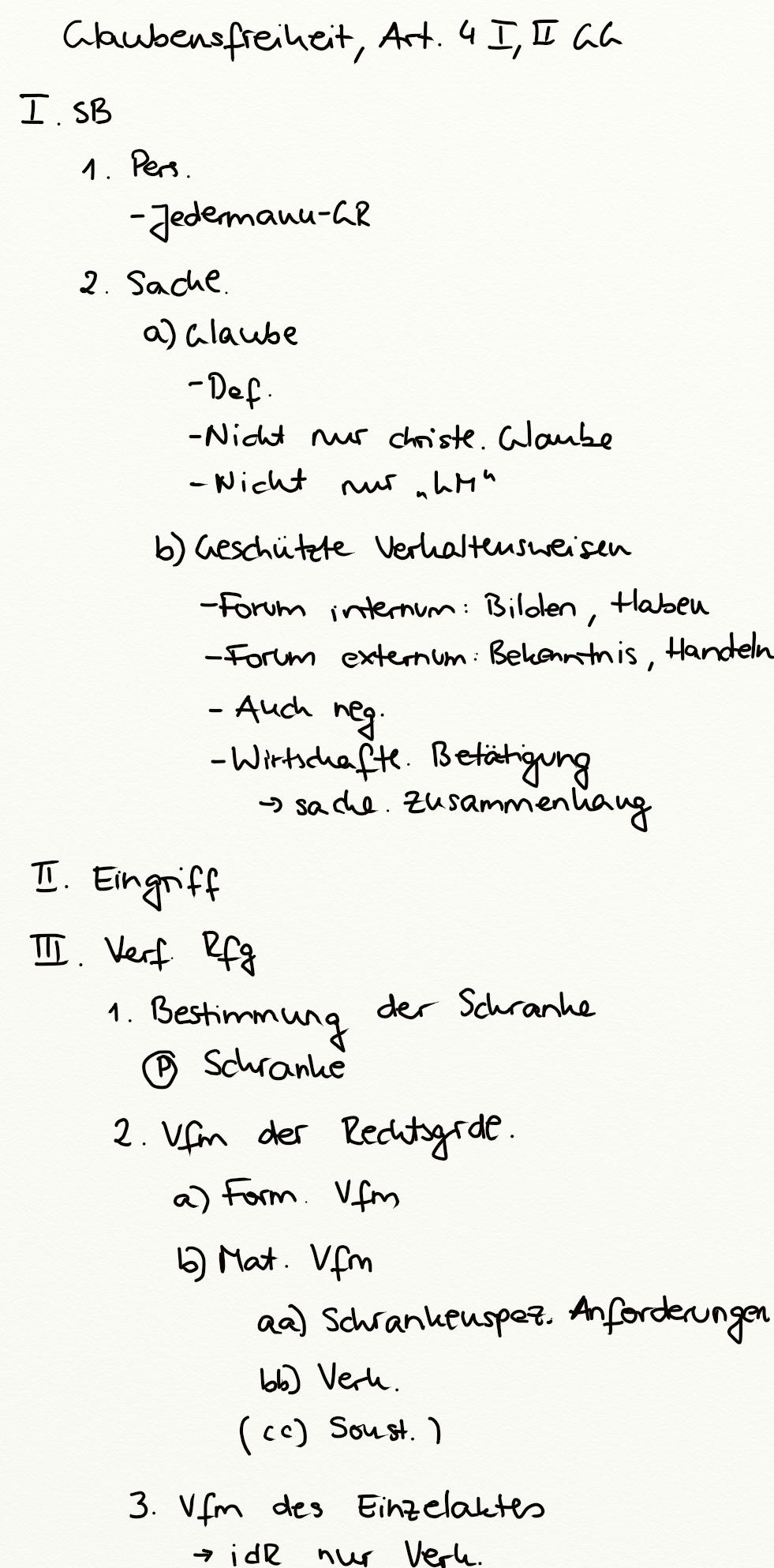 Glaubensfreiheit, Art. 4 I, II GG