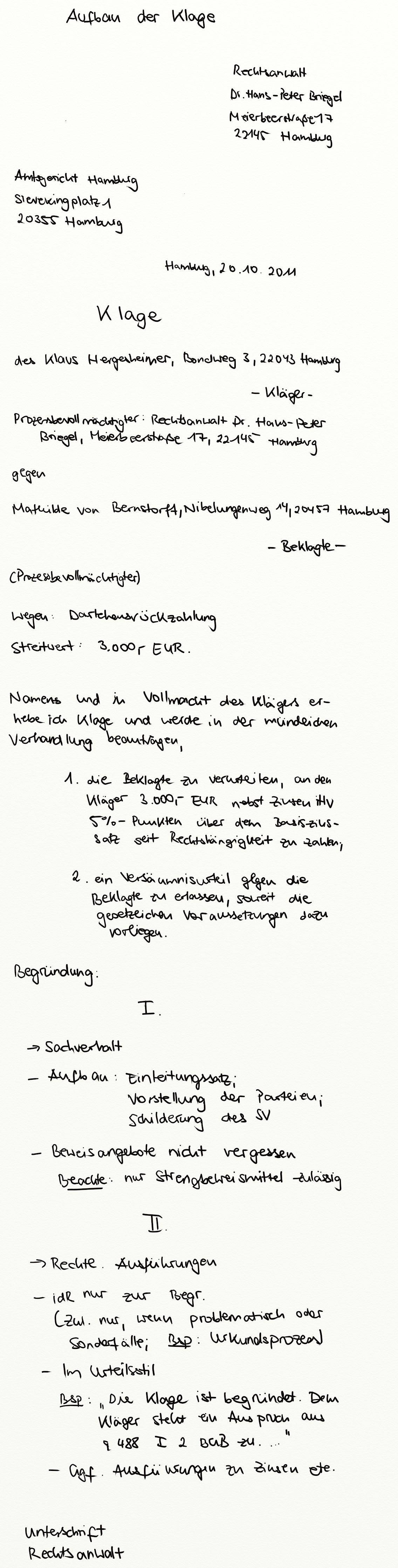 Aufbau der Klage