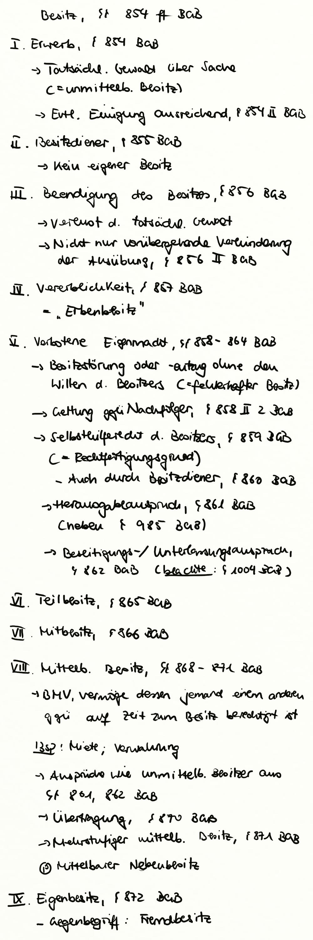 Besitz, verbotene Eigenmacht, Mittelbarer Besitz, § 858 II BGB, § 858 BGB, Mittelbarer Nebenbesitz, § 854 I BGB, § 854 BGB, Besitzdiener, § 854 II BGB, § 856 BGB, § 855 BGB, § 856 II BGB, § 861 BGB, § 856 I BGB, Selbsthilferecht, § 858 I BGB, Teilbesitz, § 859 BGB, § 862 BGB, § 868 BGB, Mitbesitz, § 865 BGB, Besitzmittlungsverhältnis § 870 BGB, § 866 BGB, Eigenbesitz, § 871 BGB, Fremdbesitz, § 872 BGB