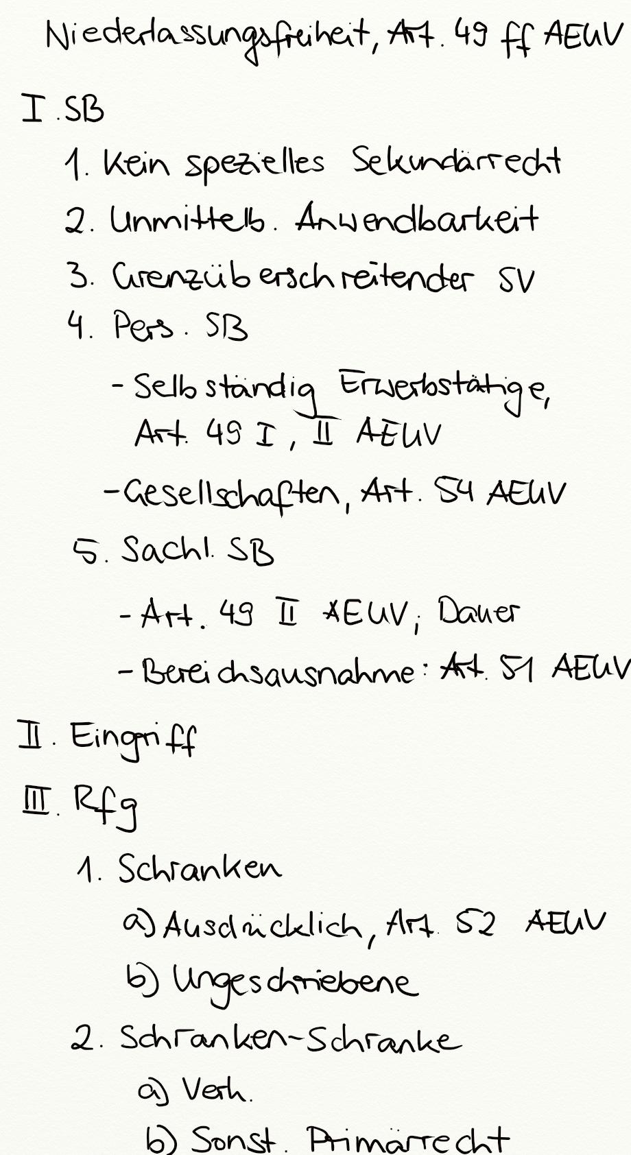 Niederlassungsfreiheit, Art. 49 ff. AEUV