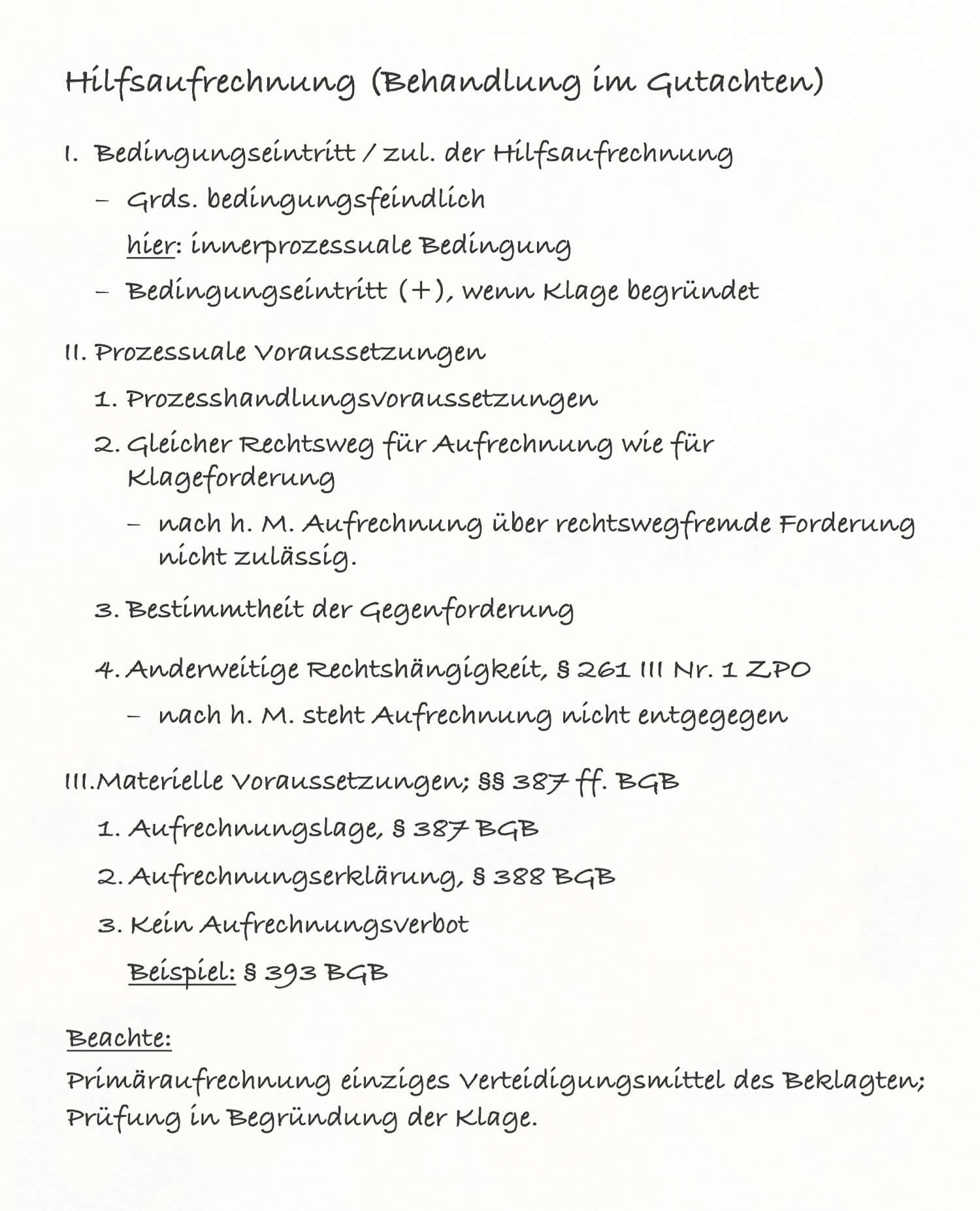 Hilfsaufrechnung (Behandlung im Gutachten)