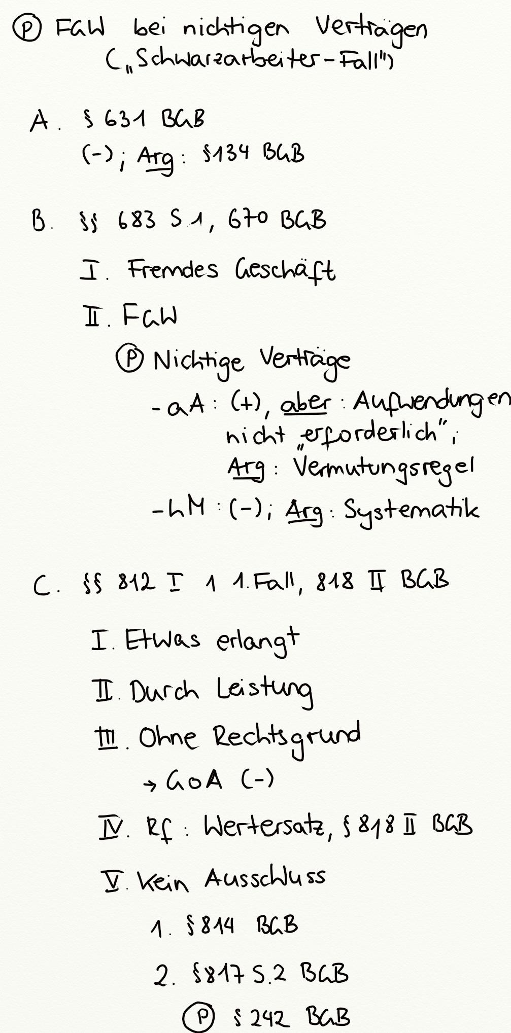 Problem - Fremdgeschäftsführungswille bei nichtigen Verträgen (Schwarzarbeiter-Fall)