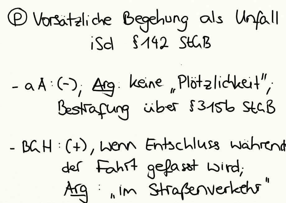 Problem - Vorsätzliche Begehung als Unfall i.S.d. § 142 StGB