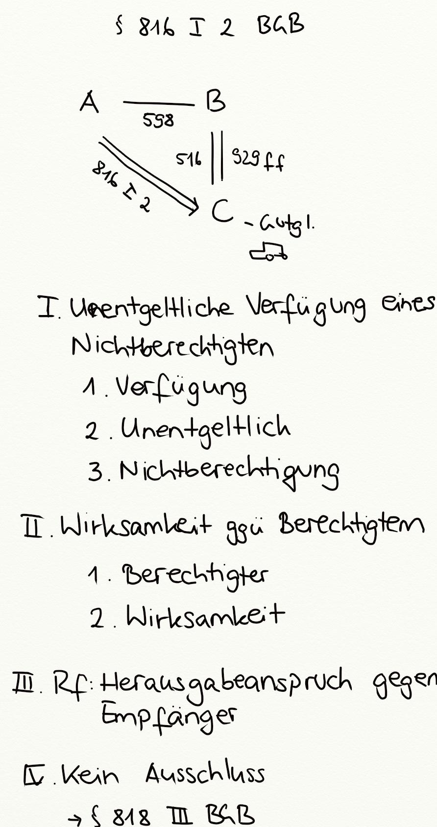Unentgeltliche Verfügung eines Nichtberechtigten, § 816 I 2 BGB