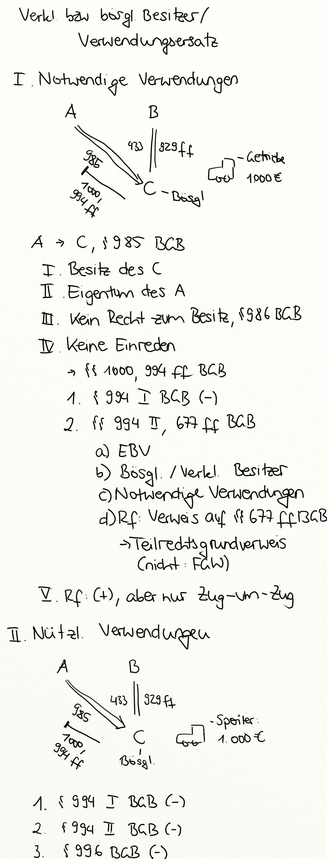 Nutzungsherausgabe, Eigentümer-Besitzer-Verhältnis, Schadensersatz, EBV, Redlicher Besitzer, bösgläubiger Besitzer, Verklagter Besitzer, Verwendungsersatz, § 987 BGB, Sperrwirkung des EBV, § 993 BGB, Deliktischer Besitzer, § 850 BGB, § 994 II BGB, § 993 I BGB, § 991 II BGB, § 990 I BGB, § 994 I BGB, § 991 BGB, § 989 BGB, § 988 BGB, § 990 BGB, Sachändernde Verwendungen, § 996 BGB, § 994 BGB