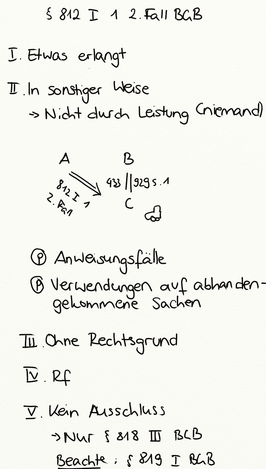 § 812 I 1 2. Fall BGB